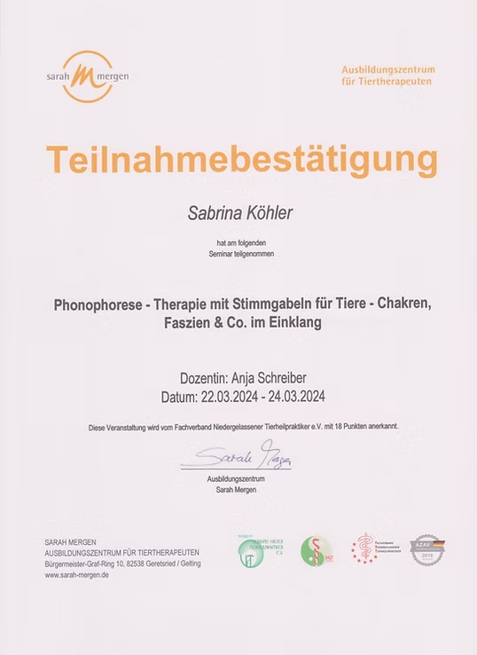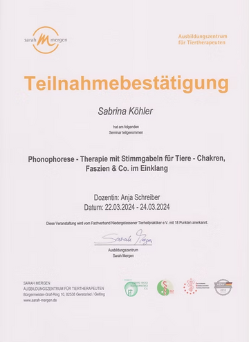 - Ausbildung in Phonophorese-Therapie und Stimmgabeltechnik
