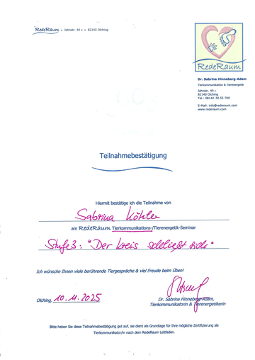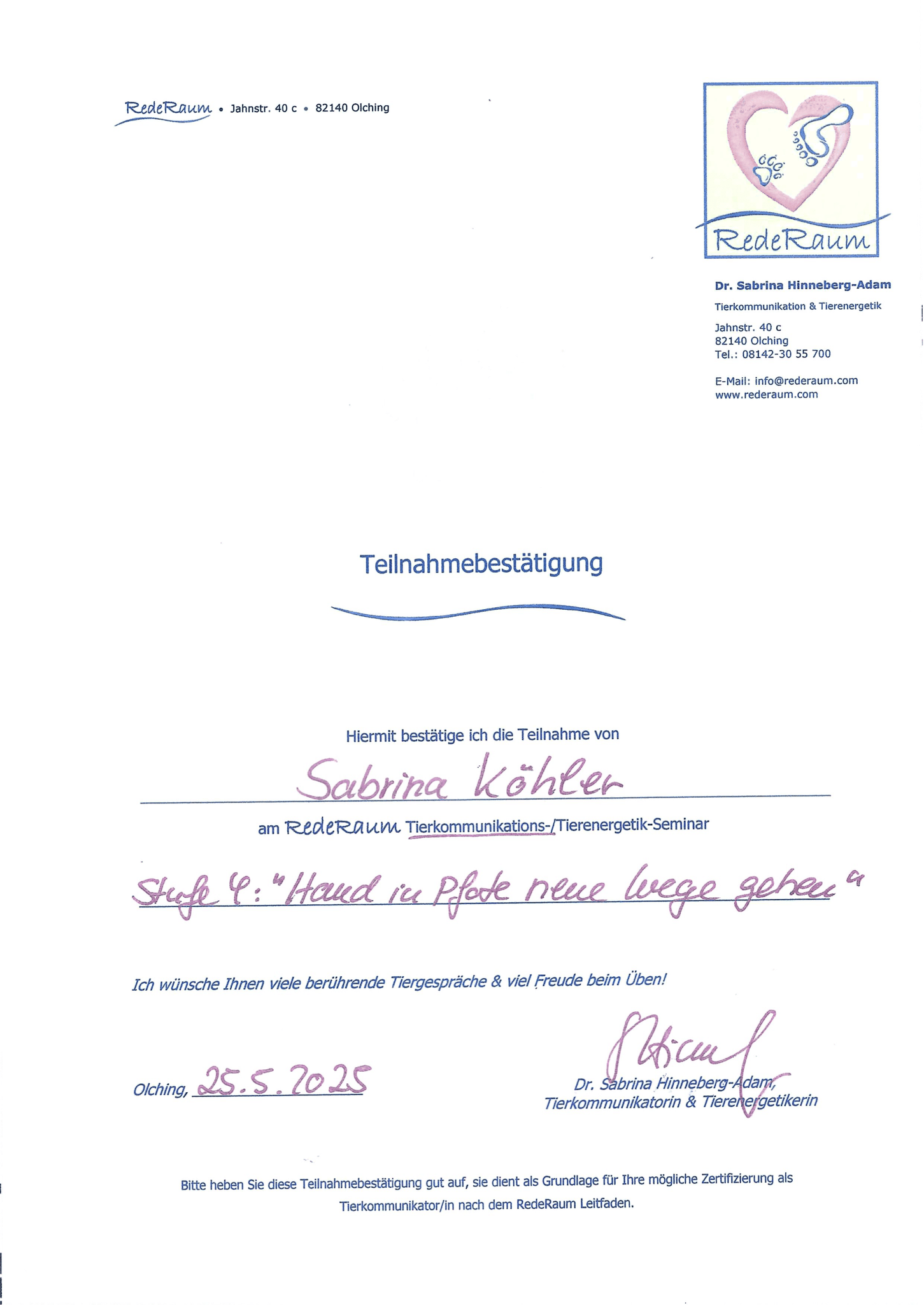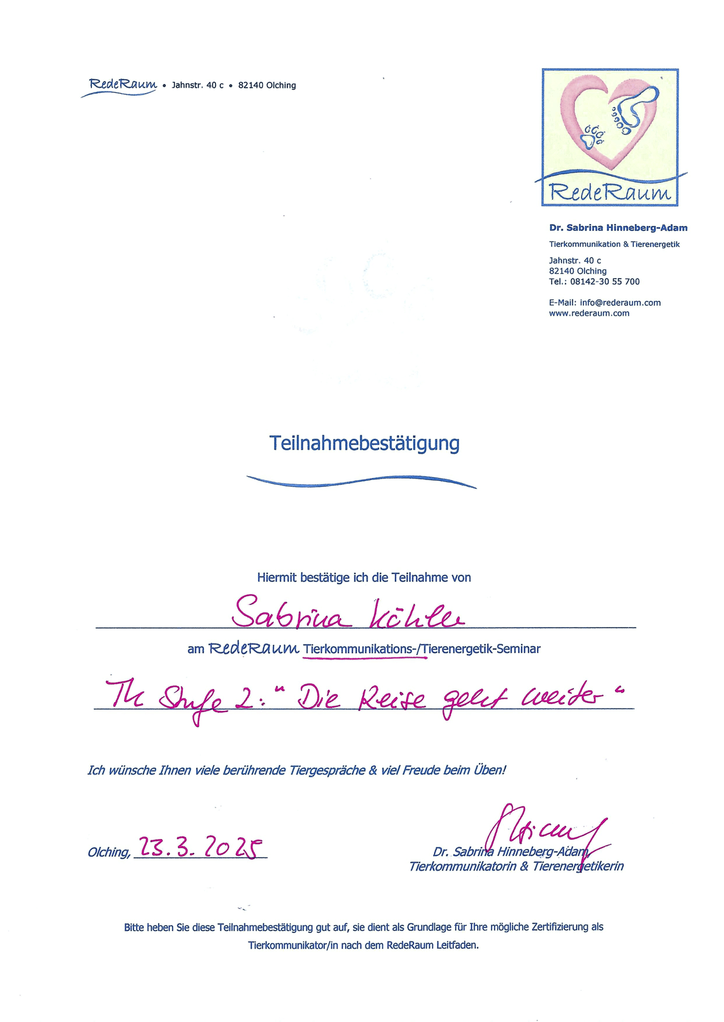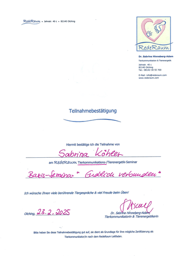 E-Mail: tiertherapie.sabrinakoehler@outlook.de