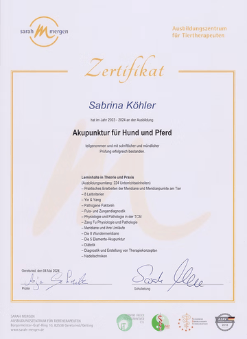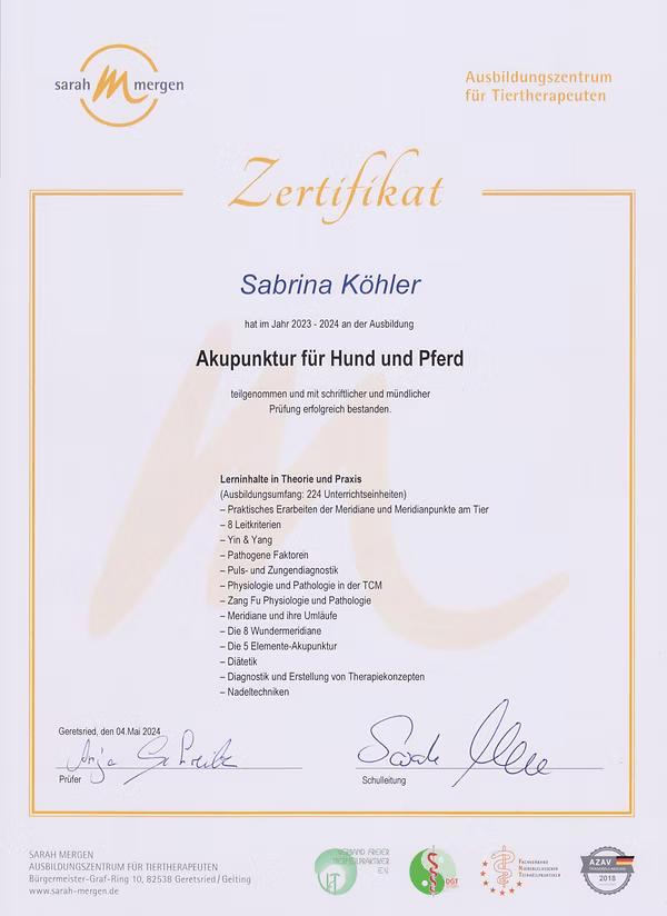 - Regelmäßige Fortbildungen im Bereich TCM für Tiere