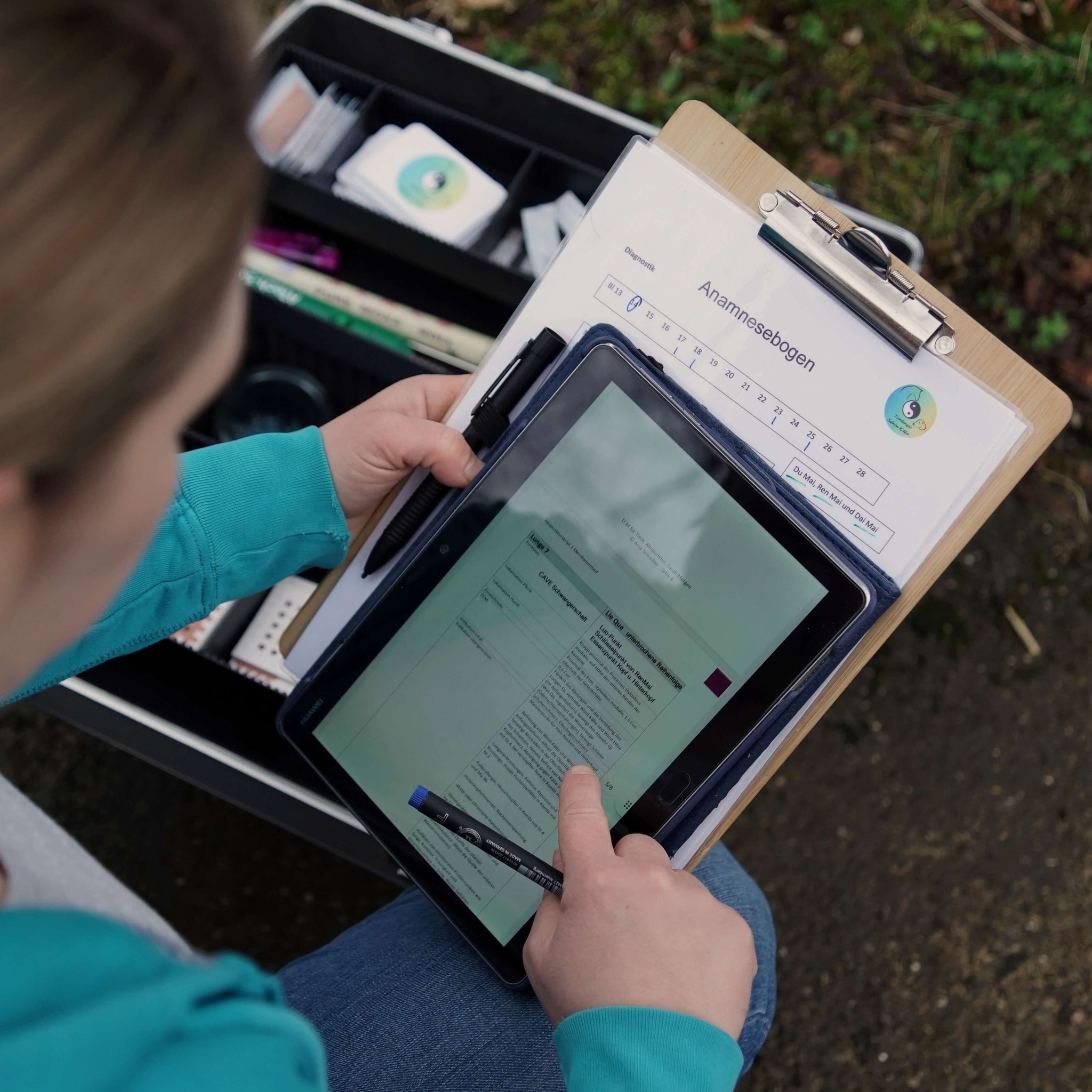 Jede Behandlung beginnt mit dir und deiner Geschichte. Du kennst dein Pferd am besten. Wir sprechen ausführlich über die aktuellen Probleme, die Vorgeschichte, aber auch über Haltung, Fütterung, Training und eventuelle frühere Diagnosen deines Tierarztes. Anschließend schaue ich mir dein Pferd genau an: im Stand und, wenn nötig, in der Bewegung. So bekomme ich ein komplettes Bild seiner Konstitution und seines Bewegungsmusters.