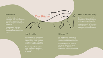 Wir konzentrieren uns auf den Rücken deines Pferdes. Hier verläuft der Blasenmeridian – eine Handbreit neben der Wirbelsäule. Entlang dieser Linie liegen wichtige Punkte (Shu-Punkte), die wie kleine Fenster zu den Organen sind. Mit der Wärme erreichen wir hier nicht nur die Muskulatur, sondern das ganze System. Im Kurs lernst du genau, wie du diese Linie findest und behandelst.