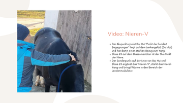 Gerade im Winter oder bei nasskaltem Wetter zieht Kälte in die Knochen. Das zehrt an der Substanz. Mit der Moxa-Zigarre bringen wir gezielt Wärme zurück. Wir arbeiten dabei auch am 'Nieren-V' (Verbindung aus Blase 23, Bai Hui und Sonderpunkt). Dieser Bereich steht für Urvertrauen und Lebenskraft. Die Anwendung dort hilft deinem Pferd, tief durchzuatmen und Ängste loszulassen.